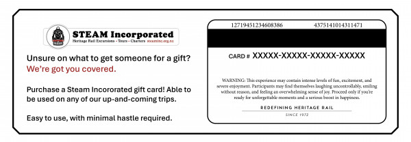 Look no further, Steam Incorporated has the perfect solution! Our special gift cards can be used to purchase tickets for any of our premier excursions, no matter where in the country you're travelling from.