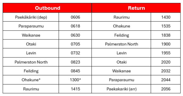 Adult Fare ex. Palmerston North/Feilding & Return - $119.00